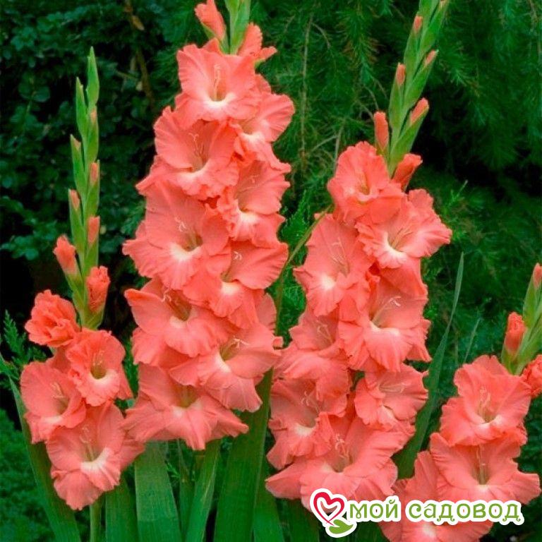 Луковицы гладиолуса гибридного Berlusconi используют для создания ярких цветников, расположенных на хорошо освещенных или частично затененных участках. Место следует выбирать таким образом, чтобы не было сквозняков. К почве культура неприхотлива. Высота стеблей гладиолуса гибридного Berlusconi достигает до 150 см. Большая часть из этой длины – мощные соцветия. Цветы крупные, красивой розово-лососевой окраски с небольшим белым бликом по центру лепестка. Смотрятся такие композиции очень красочно. Цветение продолжается с июля до сентября и сопровождается приятным цветочным ароматом. Посадка. Из-за погодно-климатических особенностей в разных регионах России сроки посадки отличаются: На Юге (Краснодарский край (Кубань), Северный Кавказ) — сажать можно уже в конце апреля. В Средней полосе (в т. ч. Подмосковье) — оптимальное время приходится на начало или середину мая. В Сибири, на Урале, в Ленинградской области — в середине или конце мая. Места посадки должны быть солнечными, без сквозняков и с качественно дренированной почвой. Затенённые участки плохо сказываются на развитии культуры. Однако в южных районах небольшое затенение допускается. Глубина высадки луковиц обычно составляет 8-10 см (для мелких), 10-15 см (для крупных). Полив. Средняя частота поливов культуры составляет раз в неделю, а летом, в жаркие дни, один раз в 3-4 суток. Поливают утром или вечером, используя около 10-12 л воды на 1 м2. Полив производят в специально подготовленные междурядные борозды, углублённые до 30-50 мм с тем, чтобы капли воды не попадали на листики гладиолусов. Без регулярного полива цветы быстро завянут. По завершении процедуры кусты окучивают. Раз в декаду обязательно производят рыхление почвы.